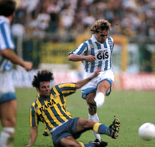 Gelsi, motore di centrocampo, in Pescara - Verona (0-0) del 18 settembre 1994.