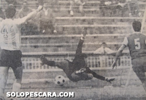 La foto del gol di De Marchi in Pescara - Massiminiana (terminata 3 a 0) del 7 giugno 1970.