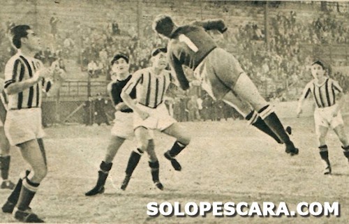 Il portiere biancazzurro Fabiani in Roma - Pescara giocata il 26 novembre 1939. La gara, amichevole, termino' 2 a 0 per i giallorossi.