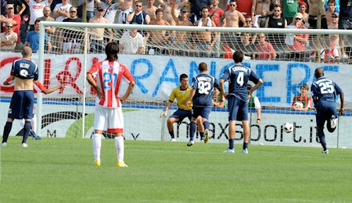 Il portiere Pinna viene espulso e in porta finisce il difensore Mengoni che tenta inutilmente di parare il penalty battuto da Arma al 94'.