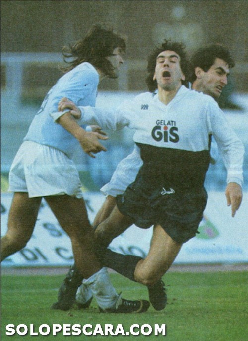 18 dicembre 1988 Lazio - Pescara 2 a 2. Serie A 1988-89 nella foto Rocco Pagano subisce il contrasto di Bervatto.