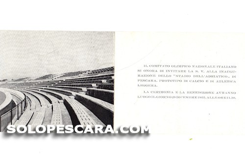 Invito della prima inaugurazione dello stadio Adriatico avvenuta il 29 dicembre 1955.