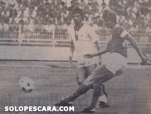 Il 29 agosto 1976 il Pescara di Cadč riceve la Fiorentina di Mazzone per la Coppa Italia (Pescara-Fiorentina 0-1 Casarsa 36' pt). Nella foto Orazi impegnato a centrocampo con Antognoni.