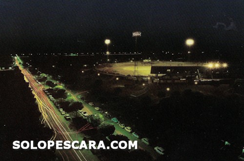 Stadio Adriatico di Pescara in notturna in una cartolina del 1965.