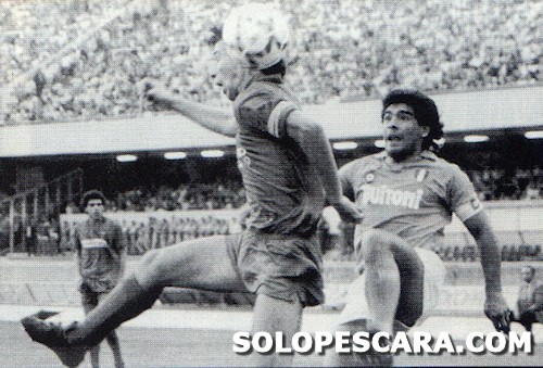 Primo Berlinghieri e Diego Armando maradona in Napoli - Pescara del 11 ottobre 1987.